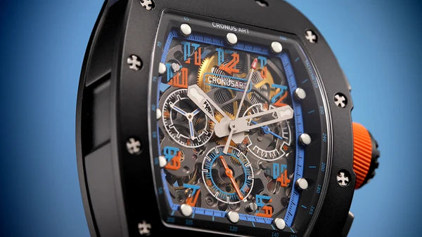 The CronusArt CA 09-05 timepiece, with its sleek carbon case and vividly colored dial, takes its design inspiration from the adrenaline-infused world of Formula 1 racing. This watch is engineered for those who live in the fast lane, embodying the precision and dynamism of the world's most thrilling motorsport.